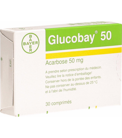 Абсорбция акарбозы из ЖКТ незначительна. После приема Глюкобая внутрь наблюдается 2 пика Cmax акарбозы в плазме крови – через 1-2 ч и через 14-24 ч. Появление второго пика обусловлено абсорбцией метаболитов из кишечника. Биодоступность при приеме внутрь составляет 1-2%.