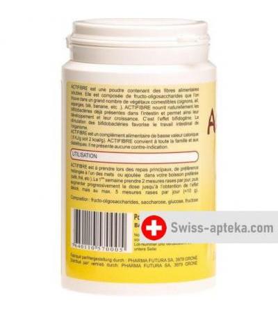 Actifibre ist eine kalorienarme Nahrungserganzung, welche aus Nahrungsfasern besteht, die auch in vielen Gemusen und Fruchten wie Zwiebeln, Spargeln und Bananen vorkommen. Diese ernahren auf naturliche Weise die Bifidobakterien, welche im menschlichen Verdauungstrakt leben und ermoglichen so deren Vermehrung. Diese Stimulation fordert eine geregelte und harmonische Verdauung.