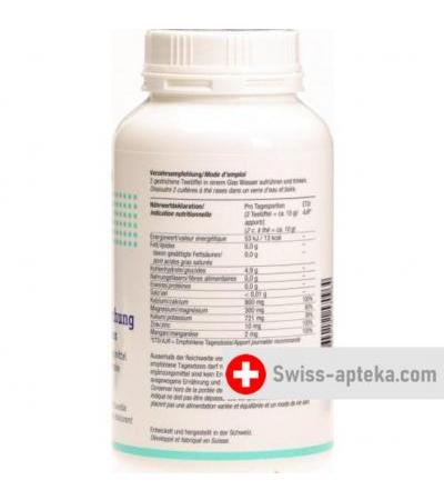 Суточная доза содержит среднюю суточную потребность кальция, магния, цинка и марганца. Кальций и магний важны для костей и зубов, а также для нормального функциионирования мышц.