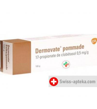 Clobetasoli-17 propionas Фармакологическое действие: Действующее вещество – клобетазола пропионат - глюкокортикостероид, который используется для местного применения в дерматологии. Клобетазола пропионат оказывает неспецифическое противовоспалительное и противоаллергическое действие благодаря вазоконстрикции и снижению образования коллагена в коже. Клобетазола пропионат также имеет свойство устранять отек, снимать гиперемию и зуд. Проникновение клобетазола пропионата сквозь кожу у разных людей разное и повышается при использовании оклюзивной повязки. У людей со здоровой кожей пиковые концентрации клобетазола пропионата в плазме 0,63 нг/мл наблюдались через восемь часов после нанесения препарата на кожу. У людей с заболеваниями кожи: псориаз, экзема пиковые концентрации препарата (2,3 и 4,6 нг/мл) наблюдались через 3 часа после одноразового нанесения Дермовейта на кожу. После абсорбции через кожу препарат, скорее всего, проходит тот же метаболический путь, что и кортикостероиды после системного применения. Однако системный метаболизм Дермовейта до конца не изучен. Показания к применению: Псориаз (кроме формы распространенного бляшечного псориаза), красный плоский лишай, дискоидная красная волчанка, стойкая экзема (рефрактерные формы).