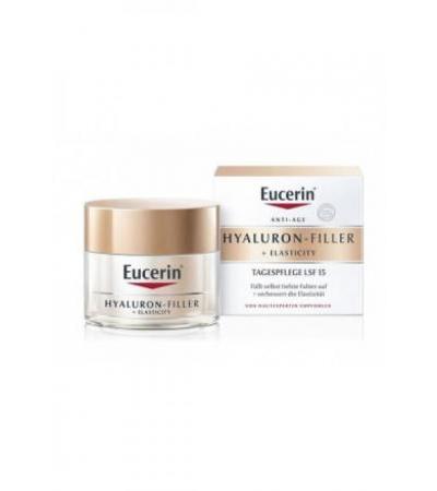 Которые Eucerin ELASTICITY+FILLER дневной крем укрепляет структуру кожи, улучшая ее эластичность и смягчает глубокие морщины. Уникальная, инновационная формула действует сразу несколько против признаков старения. Она содержит как Arctiin (высоко эффективный ингредиент ускоряет процесс обновления коллагена в клетках кожи), а также силимарина (мощный антиоксидант, который помогает деградации коллагена и эластина предотвращения и улучшения микроциркуляции на клеточном уровне). Формула дополнительно богаты короткие и длинные цепи гиалуроновой кислоты для видимого смягчения даже более выражены морщины. Таким образом, формула обеспечивает прочное и ровное ощупывание кожи и свежего сияния кожи. Eucerin ELASTICITY+FILLER дневной уход также включает SPF 15 и UVA-фильтр для дополнительной защиты от УФ-излучения, какие морщины углубляются и условное свет может ускорить старение кожи.