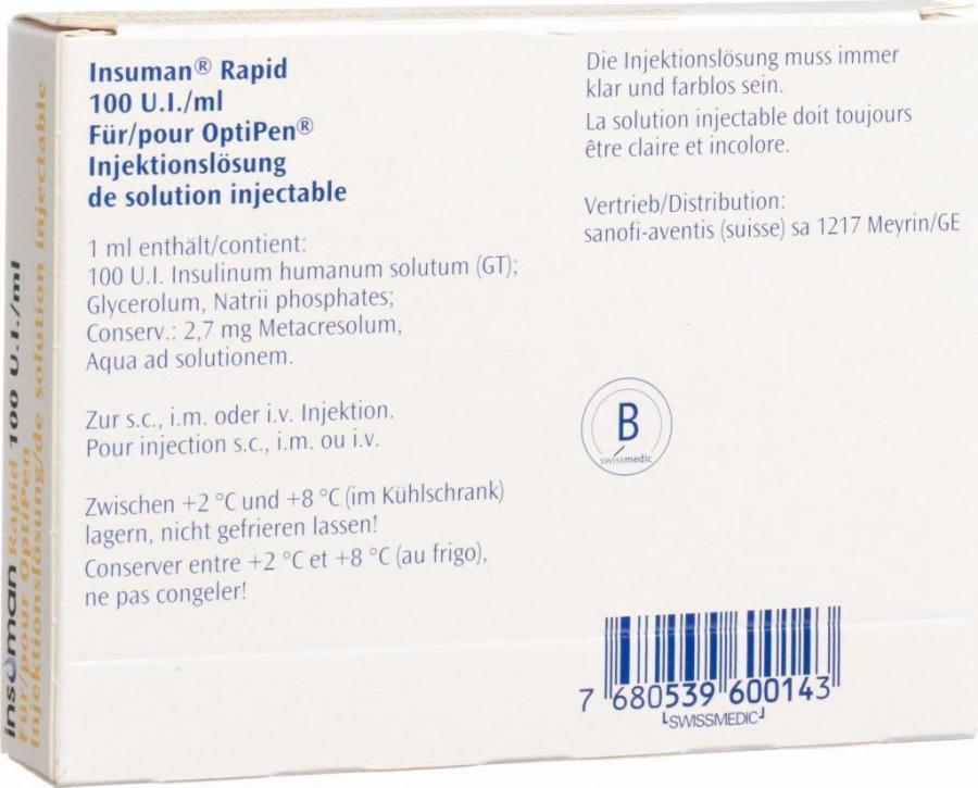 Инсулин Инсуман Рапид 5 x 3 мл раствор для инъекций
