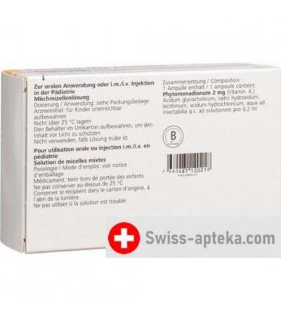 Каждая ампула содержит 2 мг фитоменадиона в 0,2 мл.
