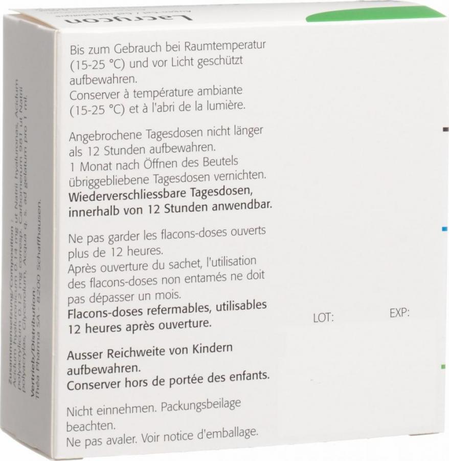 Если вам необходимо использовать другие лекарства для глаз одновременно с Lacrycon, вам следует обсудить это с врачом. Между различными применениями вы должны держать интервал не менее 5 минут и всегда оставлять Lacrycon последним.