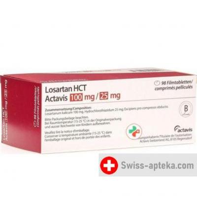 Лозартан HCT Актавис 100/25 мг 98 таблеток покрытых оболочкой