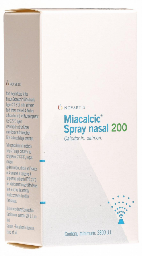 Применение препарата Миакальцик® в форме назального спрея приводит к статистически значимому повышению (на 1–2%) минеральной плотности кости в поясничных позвонках, которое определяется уже на первом году лечения и сохраняется до 5 лет. Препарат Миакальцик® обеспечивает поддержание минеральной плотности в бедренной кости.
