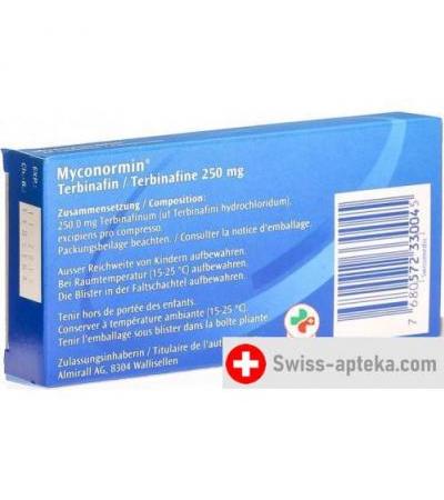 Миконормин таблетки содержат активный ингредиент тербинафин, который принадлежит к группе противогрибковых агентов (противогрибковое).