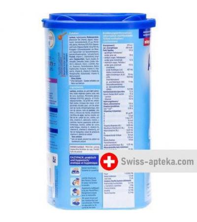 Lactose (aus Milch), hydrolysiertes Molkenproteinkonzentrat (aus Milch), pflanzliche Öle (Palm-, Raps-, Kokosnuss-, Sonnenblumenöl), Oligosaccharide (Galactooligosaccharide (aus Milch), Fructooligosaccharide), Emulgator (Citronensäureester von Mono- und Diglyceriden von Speisefettsäuren), Kaliumorthophosphat, Calciumchlorid, Öl aus Mortierella alpina, Fischöl, Cholinchlorid, Vitamin C, Emulgator (Sojalecithin), Taurin, Inositol, Eisen-II-Sulfat, Zinksulfat, Nucleotide (Natriumsalze von Uridin-, Cytidin-, Adenosin-, Inosin, Guanosin-5-Monophosphaten), Vitamin E, L-Carnitin, Niacin, Pantothensäure, Biotin, Kupfersulfat, Folsäure, Vitamin A, Vitamin B2, Vitamin B1, Vitamin D, Vitamin B6, Mangan-II-Sulfat, Kaliumjodid, Vitamin K, Natriumselenit.