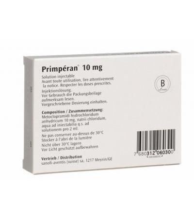 Примперан 10 мг/2 мл 6 ампул 2 мл раствор для инъекций