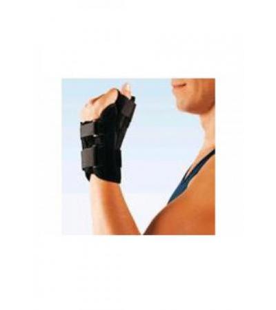 Из пены, с эластичной ткани покрытием для повышенного комфорта, с двумя фигурными, регулируемые опорные армированные стержнями. Специальная форма (с помощью 3D-форме литья)дает оптимальную опору для большого пальца и запястья. Эластичный наружный власти относительно простой Пришвартоваться только с одной стороны. Система замка с лентами Velcro. В право - или левосторонней версии. Показания: травмы связок на палец, Острый odedr хронический Entszündung запястья или пястных костей сустава большого пальца (Rhizarthrose), Сухожилия и тендовагинит на палец и запястье, послеоперационная иммобилизация лучезапястного сустава и пальца руки.
