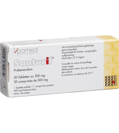 При хронической подагре лечение начинают с дозы 250 мг 2 раза в сутки в течение 1 месяца. Через неделю дозу можно увеличить до 500 мг 2 раза в сутки. При недостаточном эффекте дозу можно увеличивать на 500 мг каждый месяц. Максимальная суточная доза – 2 г. Если в течение 6 месяцев приема Сантурилу у пациента не было острых приступов подагры, а концентрация уратов в плазме крови не превышает допустимого уровня, доза может быть постепенно снижена (на 500 мг каждые 6 месяцев) до минимальной эффективной. Дозы сантурилу могут быть увеличены у пациентов, которые получают диуретики или пиразинамид, повышающих концентрацию мочевой кислоты в плазме крови.