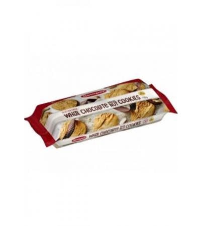 White Chocolate Brazil Nut cookie White Chocolate Brazil Nut Cookies из светлого песочное тесто дополнено белыми кусочками Шоколада и пара сладкий сон являются орехи. Ингредиенты Белый шоколад 21% (сахар, цельное сухое молоко, какао-масло, сухое обезжиренное молоко, эмульгатор [соевый лецитин], Ваниль), соленое масло, рисовая мука, молотый бразильский орех 9%, крахмал тапиоки, сахар коричневый, сахар, картофельная мука, соевая мука, концентраты фруктовых соков (яблочный, грушевый, виноградный, рисовый крахмал), рисовый крахмал, кукурузная мука, цельное яйцо, сухое обезжиренное молоко, гречневая мука, разрыхлитель (бикарбонат натрия), ароматизатор Ваниль. МОЖЕТ СОДЕРЖАТЬ СЛЕДЫ: ОРЕХ. - Без ГЛЮТЕНА. - Содержит ЛАКТОЗЫ. - МОЖЕТ СОДЕРЖАТЬ СЛЕДЫ: ОРЕХ. 150 г