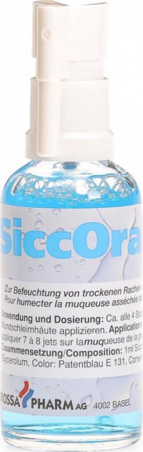 Siccoral - спрей, применяемый для устранения сухости слизистой оболочки горла и рта.