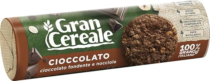 Описание продукта: ПЕЧЕНЬЕ — Насыщенный и неповторимый шоколадный вкус, богатый клетчаткой и фосфором. Изготовлено из нескольких простых ингредиентов, чтобы доставлять удовольствие вашему организму в любое время. Особенности: Шоколадное печенье из линейки Gran Cereale для взрыва вкуса и поддержания вашей фигуры. Каждая упаковка содержит приблизительно 22 печенья. ИНГРЕДИЕНТЫ: Идеально подходит для завтрака или перекуса, содержит цельнозерновую пшеничную муку, овсяные хлопья, карамелизированную твердую пшеницу, жареный фундук и обезжиренное какао. ВСЕ, ЧТО СТОИТ ПОПРОБОВАТЬ — Линейка Gran Cereale предлагает широкий выбор печенья: классическое, хрустящее с рисом, шоколадное, фруктовое с клюквой и Digestive. GRAN CEREALE — Несколько простых ингредиентов, чтобы питать ваши самые инстинктивные чувства и ощутить силу природы. Наша продукция производится с использованием возобновляемой энергии.