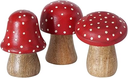 3 szt. muchomory drewniane, czerwone, białe, brązowe, talizman, 7 cm, dekoracyjne grzyby na szczęście, dekoracja jesienna, dekoracja bożonarodzeniowa, grzyby, czerwone, białe, dekoracja do