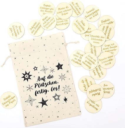Информация о товаре: Адвент-календарь без шоколада – Рождественские развлечения – с 24 деревянными тарелками в высококачественном хлопковом мешочке. Готовьтесь к Рождеству: 24 деревянные тарелки – рождественское развлечение на каждый день. Все тарелки хранятся в высококачественном хлопковом мешочке с принтом. Многоразовое использование: Адвент-календарь можно использовать каждый год, и он станет отличным предрождественским подарком. Больше от Papierdrachen: Не нашли подходящий товар? В нашем магазине Papierdrachen Advent Shop вы найдете более 1000 вариантов адвент-календарей, которые можно сделать и наполнить самостоятельно. › Подробнее о товаре