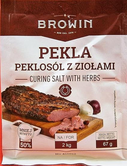 Незаменимая при приготовлении домашнего копчения мяса – идеально подходит для засолки, инъекций и натирания. На 50% меньше нитритов – продукт содержит на 50% меньше нитритов по сравнению с традиционными солями для копчения. Удобная упаковка – 67 г соли для копчения достаточно для приготовления 2 кг мяса. Гарантированно привлекательный цвет, восхитительный вкус и аромат домашнего копчения. Для приготовления рассола просто вылейте содержимое упаковки в 1 л воды, перемешайте и доведите до кипения. › Подробнее о продукте
