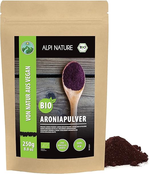 Описание продукта: Ягоды аронии: Ягоды аронии давно известны своими свойствами. Родом из Северной Америки, это растение также встречается в Центральной и Восточной Европе уже более века. Его издавна используют в качестве растительного красителя. Органическое качество: Наш порошок аронии сертифицирован как продукт контролируемого органического выращивания и подвергается постоянному контролю качества. Он подходит для веганов, не содержит глютена и лактозы. Лучшее качество для сырых продуктов: Наши ягоды аронии бережно сушатся для достижения качества сырых продуктов. Аналогичным образом, их можно измельчить в порошок. Ценность в повседневной жизни: Свойства ягод аронии и их многогранное применение хорошо известны и широко распространены. Поэтому порошок аронии становится все более популярным в нашей повседневной жизни. Варианты приготовления: Порошок аронии идеально подходит для приготовления смузи и соков, мюсли, йогурта, творога, чая, а также в качестве добавки к муке при выпечке. Пакет с многоразовой застежкой обеспечивает длительный срок хранения продукта.