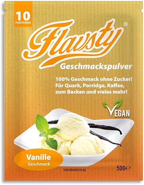 Flavsty® Smak w proszku waniliowa próbka 50 g (10 porcji) wegański proszek smakowy bez cukru — proszek aromatyczny — proszek w proszku