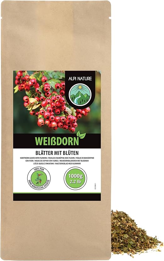 Alpi Nature Herbata z Głogu 1kg, Herbata Liściasta, Suszone i Cięte Liście oraz Kwiaty Głogu
