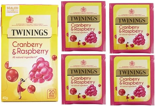 Информация о товаре: Чайные пакетики Twinings со вкусом клюквы и малины, 20 пакетиков в упаковке — 2 пакетика в упаковке. Количество: 2. Показать больше