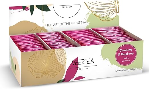 Veertea — Zestaw herbat — Malina-żurawina — 100 Torebek, Pojedynczo Zapakowanych w Kopertki — Starannie Wyselekcjonowane — Duże Opakowanie, Zestaw Prezentowy dla Miłośników Herbaty