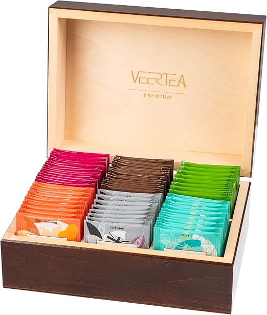 Информация о товаре: Состав набора: 16 пакетиков черного чая; 16 пакетиков чая Эрл Грей; 16 пакетиков зеленого чая; 16 пакетиков травяного чая с малиной и клюквой; 16 пакетиков мятного чая; 16 пакетиков цитрусового чая. Элегантный чайный набор в деревянной коробке: коробка защищает и элегантно представляет чайные пакетики, делая каждый момент заваривания особенным. Универсальный подарочный набор: набор содержит тщательно отобранные сорта чая. Идеально подходит для наслаждения, расслабления и в качестве стильного подарка для любителей чая. Гигиеничная индивидуальная упаковка: каждый чайный пакетик упакован в отдельный конверт. Чайный набор сохраняет свежесть, легко порционируется и обеспечивает удобное заваривание. Идеально подходит для дома или в качестве подарка: сочетание высококачественного чая и элегантной коробки делает этот подарочный набор идеальным для семьи, друзей, офиса или особых случаев.