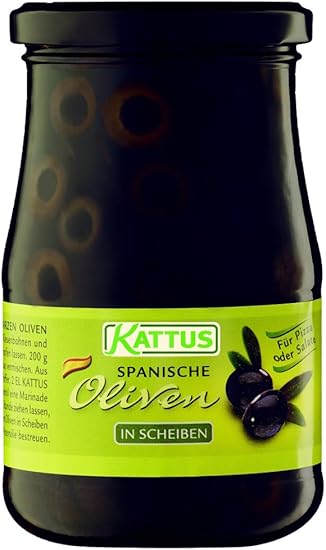 Kattus Hiszpańskie czarne oliwki, w plasterkach, 1 opakowanie (1 x 345 g)
