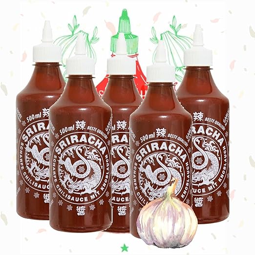 A-One Sriracha sos czosnkowy 5 x 500 ml sos chili extra Garlic – 5 szt. w opakowaniu ekonomicznym sosu chili – sosy przyprawowe – świetny do grillowanych potraw