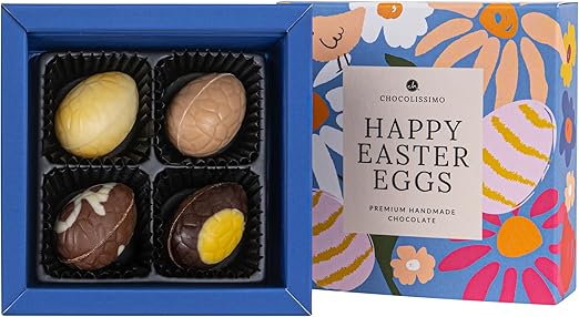 CHOCOLISSIMO — 4 czekoladowe jajka wielkanocne, bez alkoholu, prezent wielkanocny, czekoladki wielkanocne, prezenty dla dorosłych, kobiet, mężczyzn, Happy Easter 4 Egg