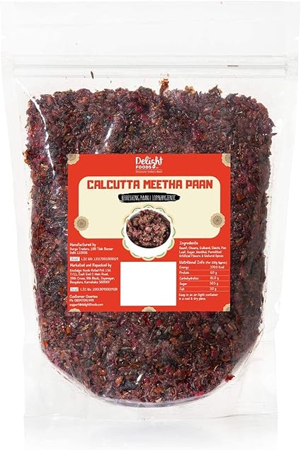 Описание продукта: Калькуттский сладкий паан — традиционный рецепт сладкого паана из Калькутты, восхитительная бенгальская закуска. Насладитесь приятным сочетанием сладости и мяты в каждом кусочке, освежающим вкусом. Приготовлено с использованием ингредиентов высочайшего качества, таких как гулканд, ментол, листья паана, фенхель, кардамон и др. (без добавления бетеля и арековой пальмы). Приготовлено, обработано и упаковано в строго гигиеничных условиях для обеспечения лучшего качества и вкуса. Хранить в прохладном, сухом и хорошо проветриваемом месте для сохранения наилучшего вкуса и сохранности. Срок годности: 365 дней. › Подробнее о продукте