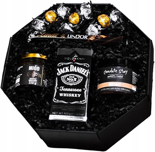 Описание продукта: Швейцарский шоколад Goldkenn с виски Jack Daniel’s, 100 г – нежный шоколад с настоящим виски. Натуральный польский гречишный мед, 220 г – насыщенный вкус и полезные свойства. Миндаль в молочном шоколаде от Manufaktura Czekolady, 120 г – хрустящий, покрытый лучшим шоколадом. Палочка из темного шоколада с тающей начинкой, 38 г – идеальное лакомство для момента расслабления.