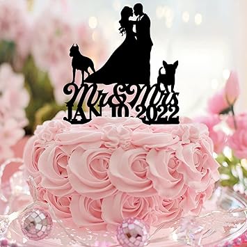Mr & Mrs Nakładki na tort sylwetka spersonalizowana z psem i kotem rustykalna panna młoda i pan młody ozdoby na tort na ślub wieczór panieński dekoracje ślubne prezenty dla pary akryl czarny