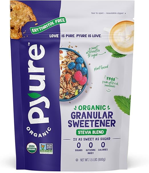 Pyure Organic Stevia Blend Granulated All-Purpose — White Sugar Substitute, Zero Carb, Zero Sugar, Zero Calorie, Plant-Based Stevia Sweetener for Keto Friendly Food, 1.5 lb (24 oz)