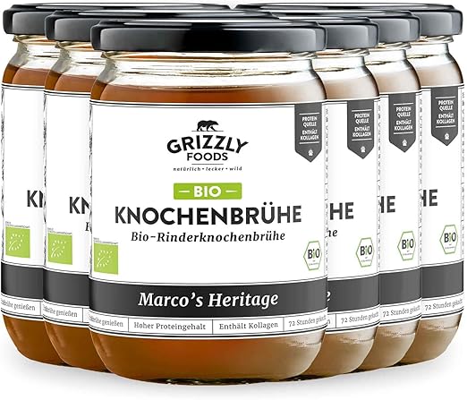 Описание продукта: Варка до 72 часов – Для максимального вкуса и насыщенности питательными веществами каждая партия нашего костного бульона бережно варится до 72 часов. Результат: исключительно насыщенный, с интенсивным вкусом бульон. Богат коллагеном – Наш говяжий костный бульон содержит 5% коллагена, что делает его идеальным для поддержания здоровья суставов, кожи и общего самочувствия. Максимальное содержание костей – Благодаря содержанию костей в 51%, наши костные бульоны обладают более интенсивным вкусом и содержат больше питательных веществ, чем бульоны других брендов. Идеально подходит для мощного, богатого питательными веществами питания. Органическое качество – Полностью не содержит мясных экстрактов, усилителей вкуса, сахара и искусственных добавок. Только натуральные, сертифицированные органические ингредиенты гарантируют чистоту и качество бульона. ЗДОРОВЫЙ – Не содержит сахара и мясных экстрактов, оптимален для диет и детоксикации. Экологичность – Изготовлено из органических ингредиентов и перерабатываемой стеклянной тары. Качество ручной работы – Произведено с любовью и заботой небольшими партиями.