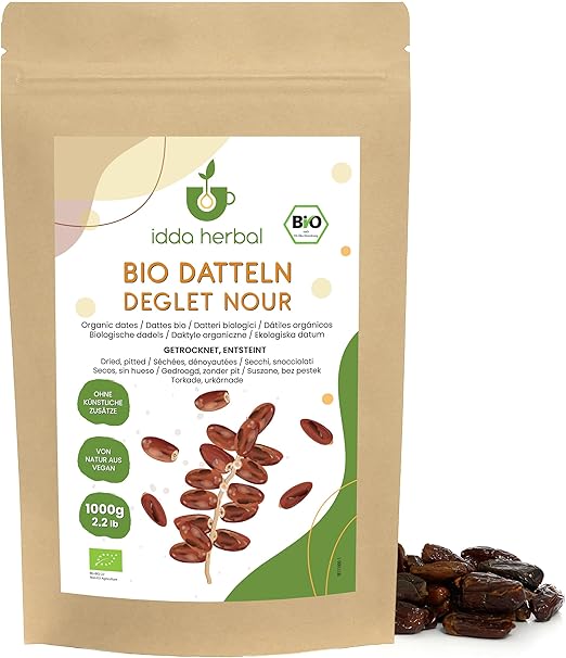 Описание продукта: Натуральная сладость, чистота и мягкость: Насладитесь естественной насыщенной сладостью наших фиников, собранных на пике зрелости и бережно высушенных для получения мягкой, тягучей текстуры. Известные как «природные сладости», эти финики идеально подходят для перекуса или в качестве добавки к энергетическим батончикам, смузи и десертам. Простые ингредиенты, максимальный вкус: Наши финики не содержат добавленного сахара, являются натуральными веганскими, безглютеновыми и не содержат добавок, консервантов или ароматизаторов — только чистые, необработанные фрукты в лучшем виде. Перекус на ходу: Упакованные в герметичный пакет для сохранения свежести и удобства, эти финики идеально подходят для перекуса на ходу или на работе, в качестве перекуса перед тренировкой или в качестве дополнения к ланч-боксу. Органический продукт: Этот продукт получен из сертифицированного органического земледелия и соответствует стандартам качества и чистоты ЕС. Сертифицировано компанией Nutramed (Орган контроля: BG-BIO-22, номер проверки: BG-BIO-22.100-0001488.2025.002). Неизменные стандарты, упаковка за упаковкой: мы проверяем каждый этап — от фермы до упаковки — чтобы гарантировать, что каждый финик имеет неизменный вкус, консистенцию и состав.