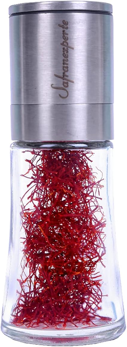 Młynek do szafranu wypełniony wyszukanymi nitkami szafranowymi Pushal 2,5 g młynek szafronowy