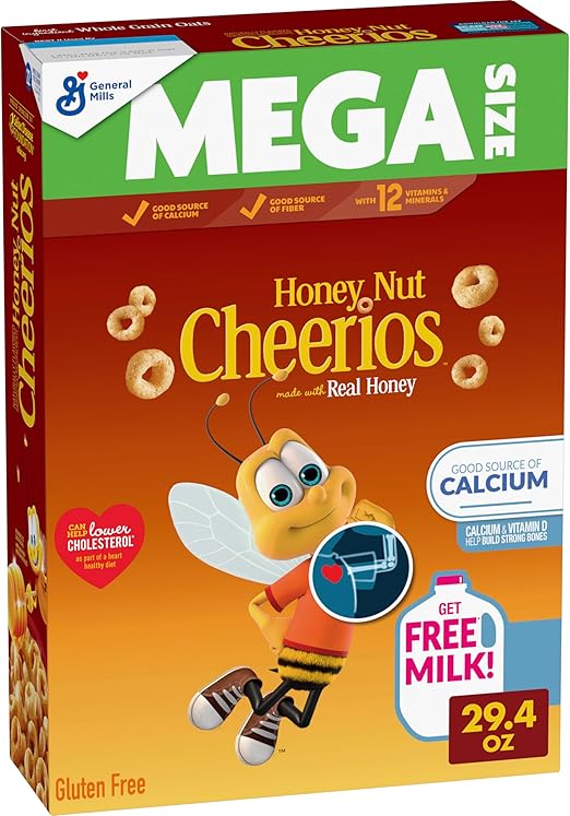 Хлопья для завтрака Cheerios Honey Nut Cheerios Heart Healthy, безглютеновые, с цельнозерновым овсом, мега-размер, 29,4 унции.