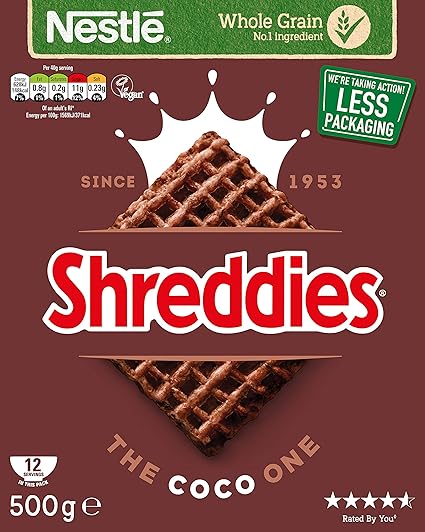 О продукте: Shreddies Coco One — это по-настоящему шоколадные хлопья для завтрака, изготовленные на 77% из цельного зерна. Восхитительный какао-вкус вплетен в каждый сладкий квадратик, создавая шоколадное молоко, которое так же вкусно! Любимые детьми, богатые зерном, витаминами и железом, наши вкусные Shreddies Coco One также подходят для веганов.