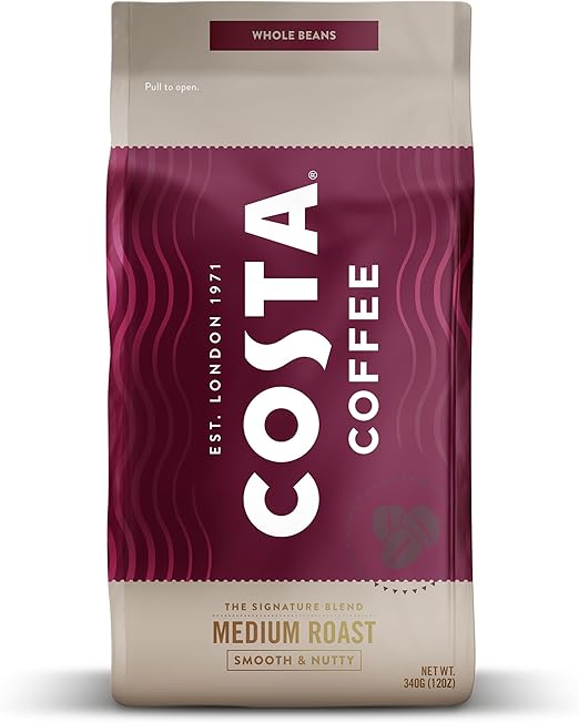 Costa Coffee Kawa pełnoziarnista, Mieszanka Signature Średni stopień prażenia, 340 g każda, Certyfikowane przez Rainforest Alliance