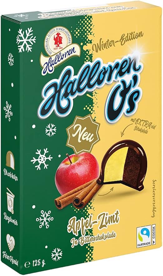 Об этом продукте Самый крутой трюфель в мире: O’s – Насладитесь восхитительным вкусом В качестве подарка: Вкусные O’s в качестве шоколадного подарка на день рождения, Рождество, Пасху или просто так Совершенно новый и невероятно вкусный: Halloren O’s – восхитительные пралине от Halloren Вкусы: Маленькие шоколадные шарики O’s скрасят каждый день – Насладитесь этим восхитительным разнообразием шоколадных шариков Halloren. Превосходно: Halloren O’s – яблоко и корица, идеальная зимняя закуска! Идеально подходит для перекуса. Показать больше