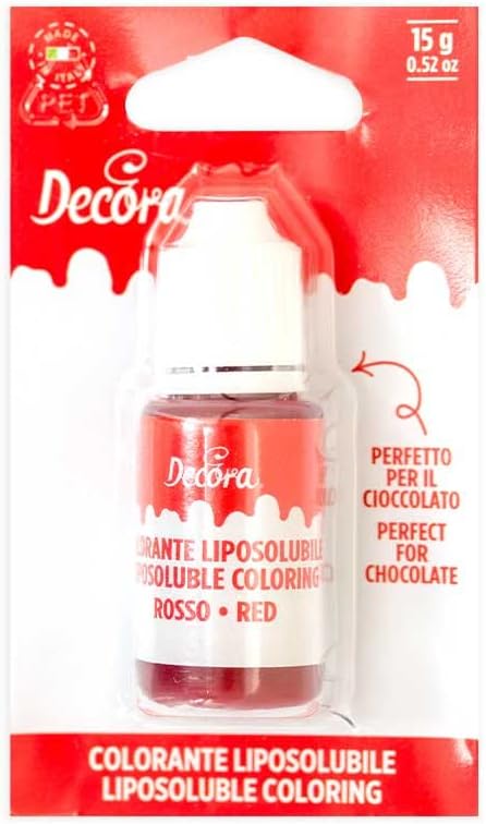 Описание продукта: Пищевые красители. Вес товара: 25,0 грамм. Количество единиц: 15,0. Тип единицы: грамм. Применение: Жирорастворимые жидкие красители, особенно подходящие для окрашивания шоколада. Также идеально подходят для окрашивания жирных кремов, таких как сливки и масляный крем. Предупреждение о безопасности: Внимательно прочтите инструкцию на упаковке. В удобной дозирующей бутылочке. Идеально подходит для окрашивания шоколада или кремов. Пищевые красители в удобной дозирующей бутылочке. Идеально подходит для окрашивания шоколада или кремов. Страна происхождения: Италия. Количество: 1. Состав: Красный: Подсолнечное растительное масло, Краситель: E129. Может содержать следы орехов и молока.