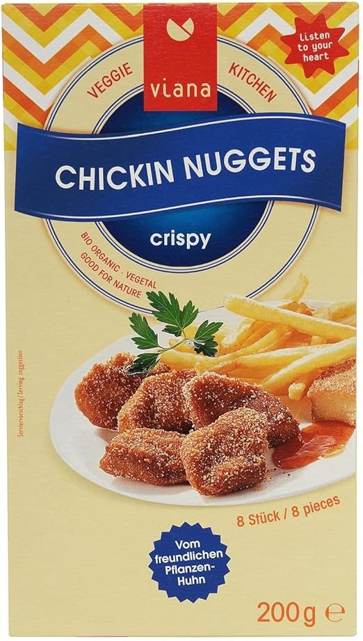 Информация о продукте VEGAN NUGGET (Вегетарианские наггетсы) Ингредиенты: 26% тофу: (соевые бобы*, питьевая вода, коагулянт: хлорид магния [нигари]), питьевая вода, 17% пшеничного белка*, подсолнечное масло*, пшеничные панировочные сухари (пшеничная мука*, питьевая вода, морская соль, паприка*, дрожжи*), лук*, миндальная мука*, дрожжи*, загустители: мука из рожкового дерева*, специи*, нерафинированный тростниковый сахар*, сельдерей*. *органически выращено. Показать больше