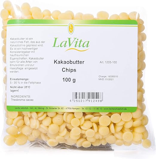 Информация о продукте: Шоколадная крошка Lavita с какао-маслом — стандарт содержания воды и кислорода — 100 г — Шоколад для выпечки 100 г (1 упаковка) Показать больше