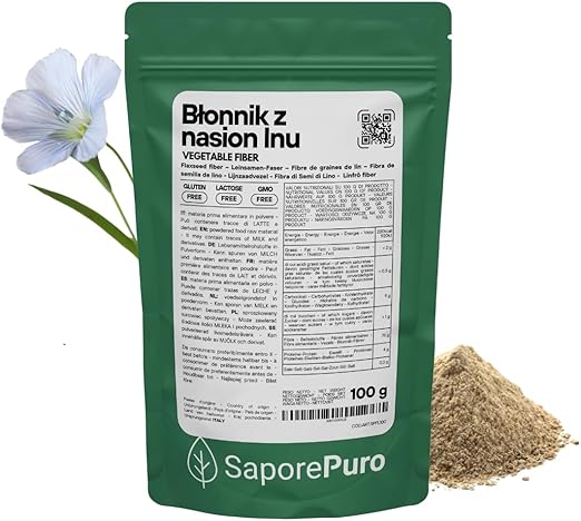 SaporePuro Włókno lniane 100 gr — Naturalne źródło błonnika i składników odżywczych — Bez glutenu
