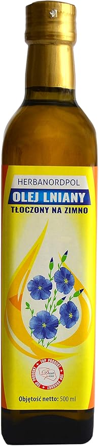 Информация о продукте: Масло холодного отжима сохраняет максимальную питательную ценность. Идеально подходит в качестве добавки к салатам и хлебу (вместо сливочного масла). Идеально подходит для творога, йогурта и овсянки. Не использовать для жарки. Масло отжимается с помощью шнековых прессов при низких температурах (до 47°C), что приводит к меньшему выходу продукта, но гарантирует его полную ценность. Приобретайте традиционный продукт с проверенным качественным составом. Очень благоприятное соотношение жирных кислот омега-3 и омега-6. Высокое содержание усваиваемых лигнанов и витамина Е. Нерафинированное – для лечебных и пищевых целей. Альфа-линоленовая кислота (АЛК), которой много в льняном масле, должна потребляться ежедневно в количестве 2 г в соответствии со стандартами EFSA, а по данным Института пищевых продуктов и питания, она должна составлять 0,5% от суточной нормы потребления человеком, в то время как линолевая кислота (ЛК) должна составлять 10 г и 4% соответственно от общего количества продукта. ЭПК и ДГК, получаемые из альфа-линоленовой кислоты, также являются незаменимыми. Масло получают методом прессования из золотистых семян льна – вкус и качество масла были отмечены программой «Ценим польское» под патронажем Министерства сельского хозяйства. › Подробнее о продукте