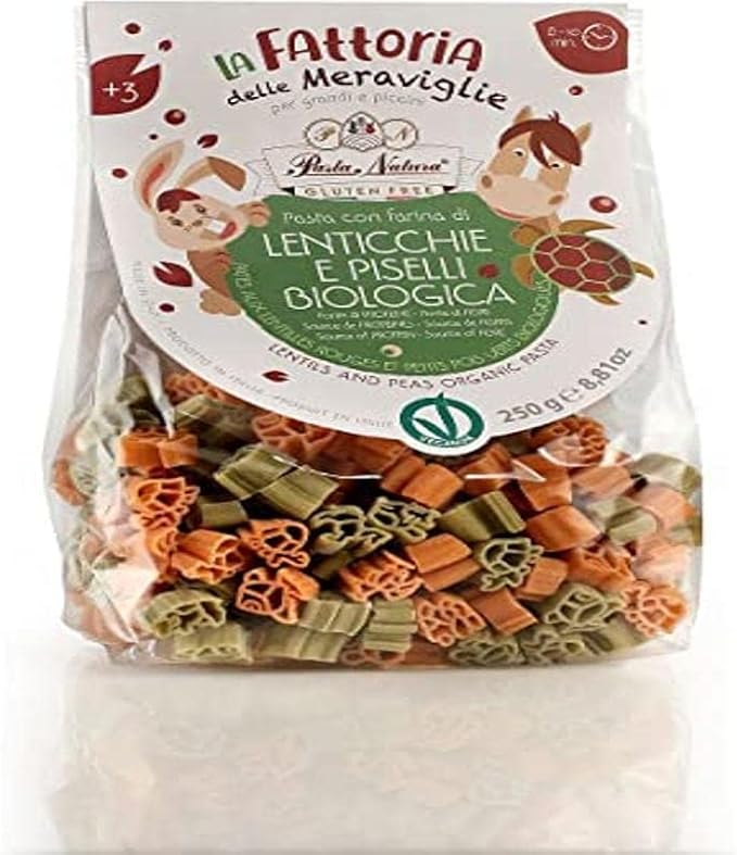 MAKARON (Z SOCZEWICY I GROSZKU DLA DZIECI) ZWIERZĘTA BEZGLUTENOWY BIO 250 g — PASTA NATURA