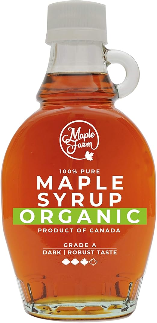 MapleFarm — Органический кленовый сироп — Произведено в Канаде — Класс А (темный, насыщенный вкус) — Бутылка 189 мл (250 г) — Чистый органический кленовый сироп — Органический кленовый сироп