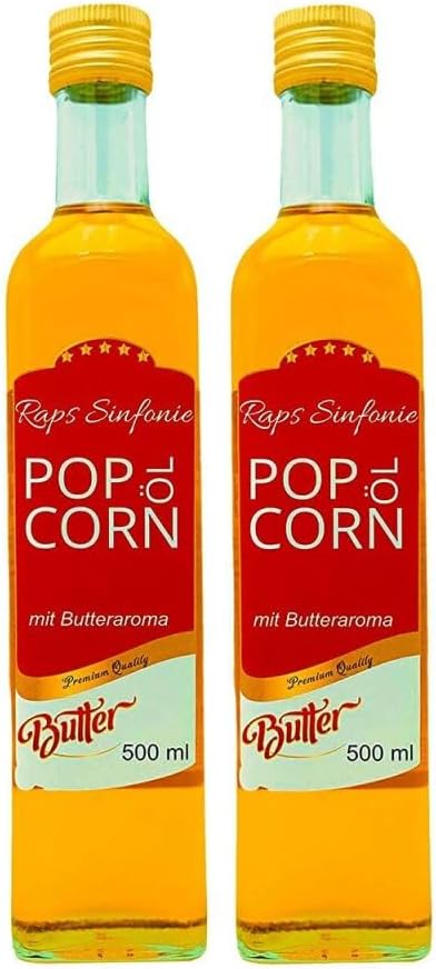 Описание продукта: — Смесь рапсового и виноградного масла с натуральным сливочным вкусом для приготовления свежего попкорна. — Наше масло для попкорна производится в Германии из высококачественных, ценных ингредиентов и обладает высокой термостойкостью. — Удобный носик для точного дозирования. Помимо приготовления вкусного попкорна, масло можно использовать различными способами: для жарки, приготовления на пару и выпечки. — Это масло для попкорна не содержит лактозы и подходит для веганов, что делает его идеальной альтернативой для тех, кто хочет питаться осознанно и не хочет отказываться от вкуса сливочного масла. — Длительный срок хранения — не менее года, так что у вас будет достаточно времени, чтобы его использовать. Идеально подходит для сладкого, соленого и острого попкорна.