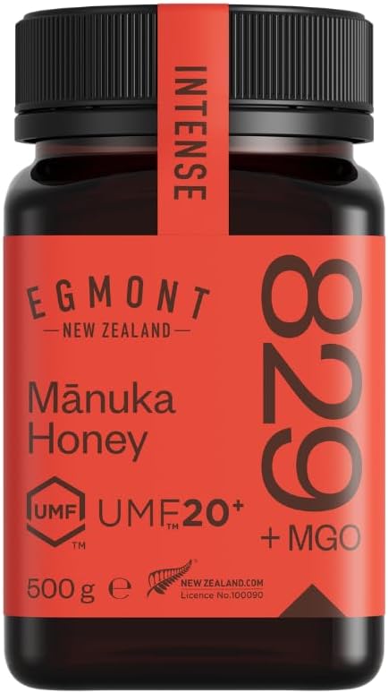 Egmont Honey Miód Manuka 829+ MGO 20+ UMF 500g przebadany laboratoryjnie i certyfikowany pod kątem zawartości MGO i UMF jednokwiatowy i w 100% naturalny wyprodukowany i butelkowany w Nowej Zelandii